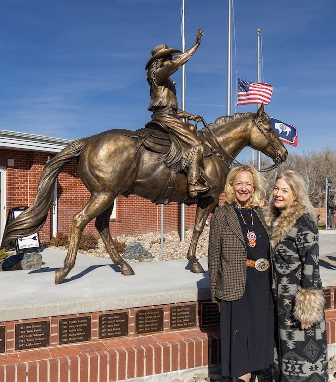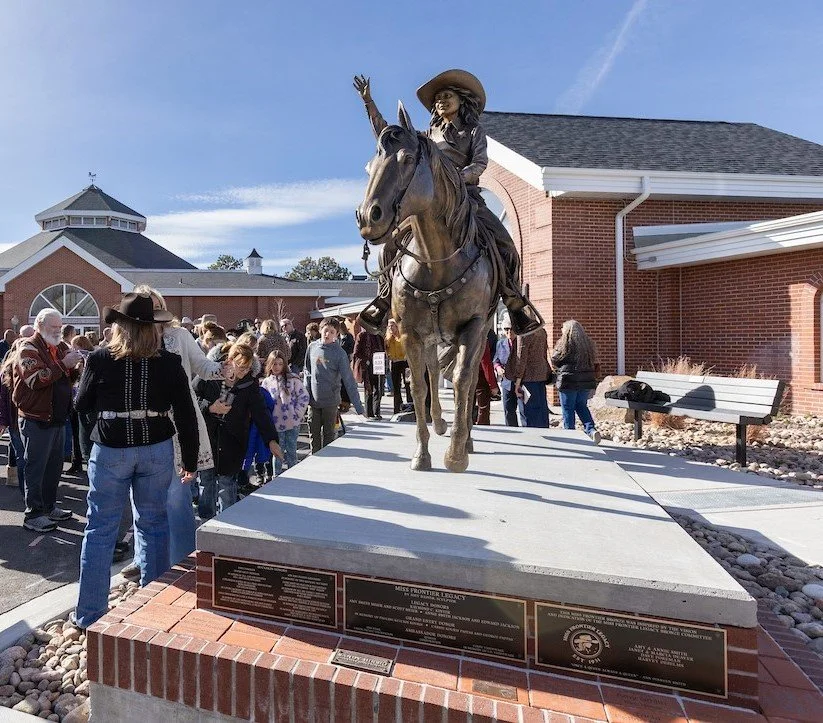 From there, the vision only grew. To further honor these incredible ambassadors of Cheyenne Frontier Days™, Amy, Annie, Janet, and Marcia began the journey of raising more than $300,000 - with the support of many generous friends and community members - to bring to life a permanent tribute: a life-size bronze of Miss Frontier on horseback, standing proudly at the entrance of the Old West Museum