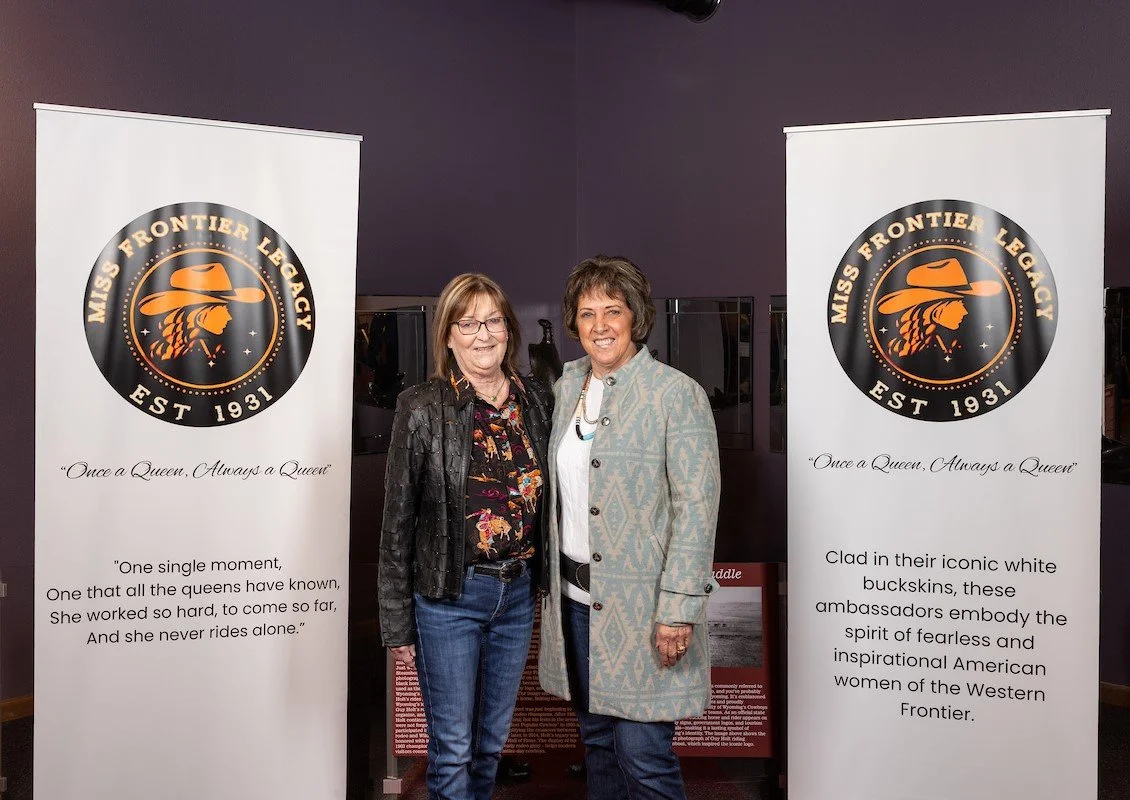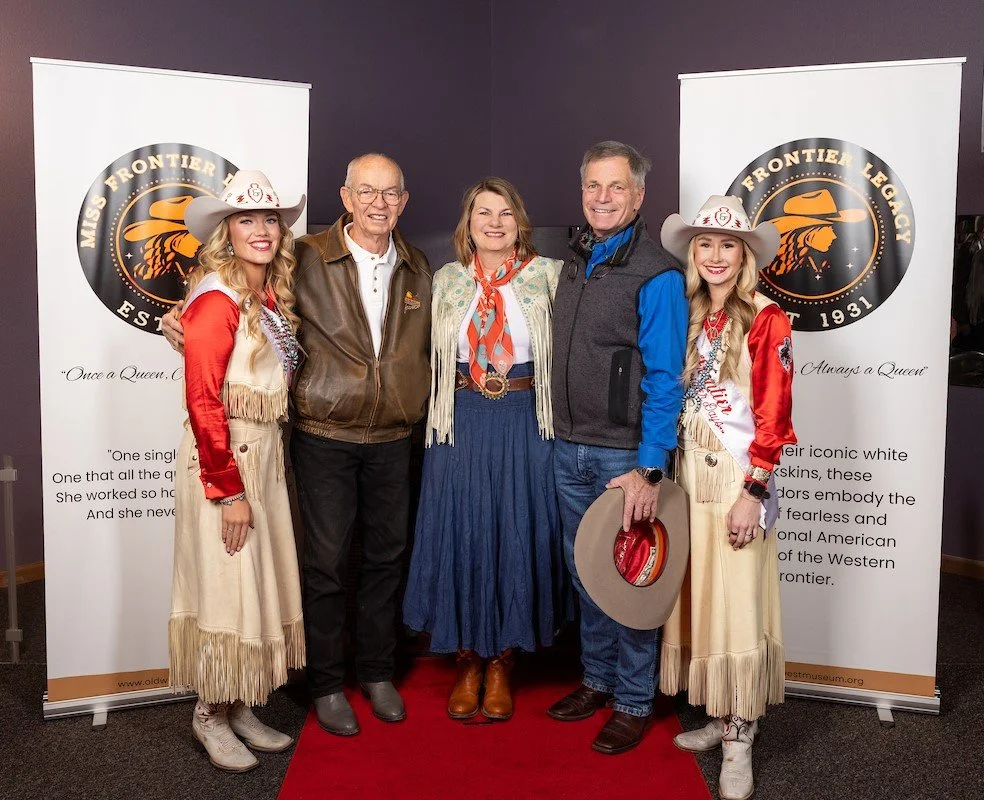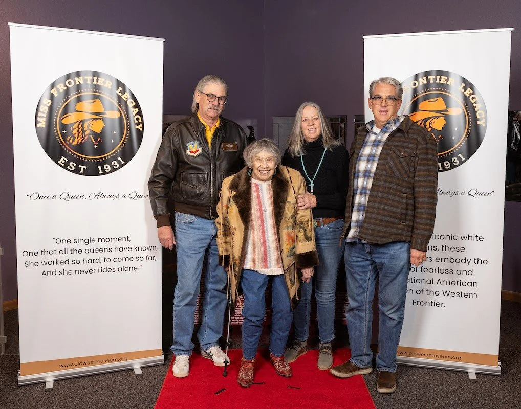In January 2019, Miss Frontier 1946, Lois Hofmann Deaver, passed away. Just one month later, Miss Frontier 1947, Ann Dinneen Smith, followed. To honor their mothers, Janet Hofmann McLean, Marcia Deaver Swisher, Amy Smith Meier, and Annie Smith Jackson purchased banners of Lois and Ann in their Miss Frontier days to be displayed at the Old West Museum.